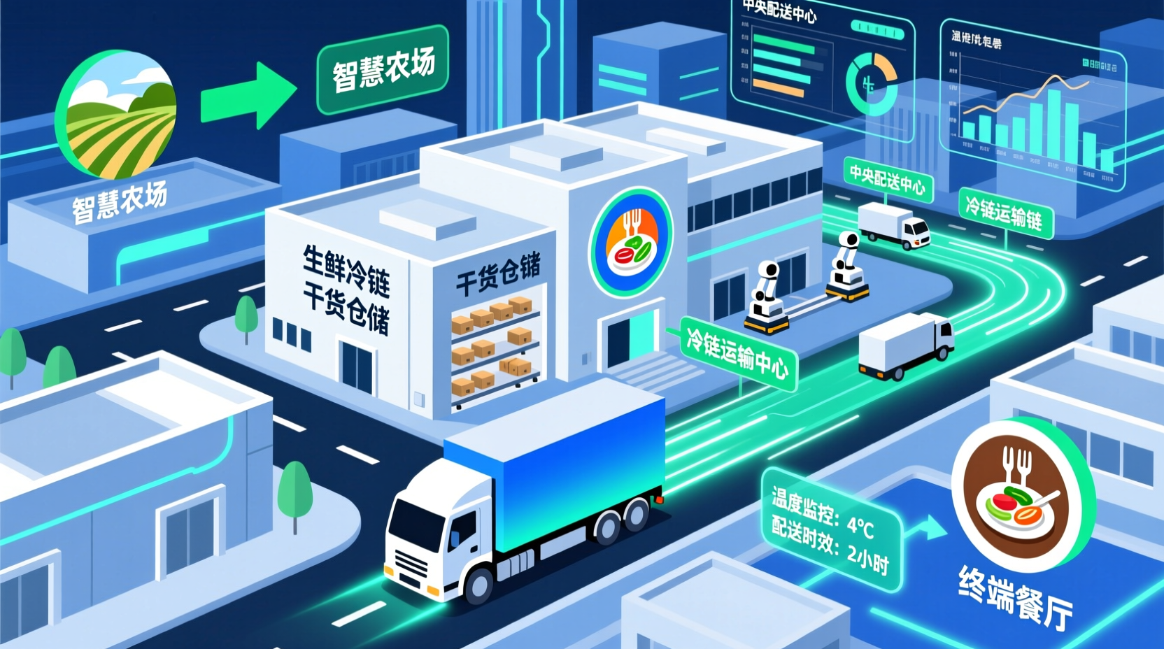 当前,餐饮行业在消费升级和数字化转型的浪潮中,供应链系统已成为企业竞争力的核心支柱。然而,传统供应链模式正面临效率瓶颈、成本高企与食品安全风险等多重挑战。构建高效、敏捷、透明的现代化供应链体系,不仅是行业发展的必然趋势,更是企业实现可持续增长的关键路径。 现状分析:挑战与机遇并存 餐饮供应链涵盖食材采购、仓储管理、中央厨房加工、物流配送及门店运营等多个环节。当前行业普遍存在以下痛点: 1. 信息孤岛现象严重:采购、仓储、生产、物流数据分散于不同系统,缺乏实时协同机制,导致库存周转率低、损耗率高(部分企业生鲜损耗率超过15%)。 2. 成本结构失衡:物流成本占营收比重达8-12%(高于零售行业5-7%),其中冷链覆盖率不足60%,温控失效引发的食材变质成为隐性成本黑洞。 3. 食品安全溯源困难:传统纸质记录占主流,跨环节追溯响应时间超过24小时,重大食安事件召回效率不足70%。 4. 需求预测失准:基于历史经验的订货模式导致供需错配,旺季缺货率与淡季滞销率均超过20%,严重影响客户体验与资金效率。 核心问题:系统性重构的紧迫性 深层次矛盾体现在三个维度: - 技术断层:75%的中型餐饮企业仍使用ERP基础模块,IoT(物联网)、AI预测算法等新技术渗透率不足20%。 - 标准化缺失:食材规格、加工工艺、配送标准不统一,衍生出跨区域供应链协同障碍。 - 生态链割裂:农户、供应商、加工厂、物流商之间利益分配失衡,缺乏数字化协作平台。 解决方案:四维创新实践框架 1. 智能化技术底座构建 - 物联网动态监控:在冷链车、仓库、加工线部署温湿度传感器+RFID标签,实现全链路温控数据实时回传(如某头部火锅品牌应用后损耗率降低40%)。 - AI驱动的供需引擎:整合POS数据、天气信息、社交媒体舆情训练预测模型,某快餐企业通过AI订货系统将预测准确率提升至92%,库存周转速度加快1.8倍。 - 区块链溯源体系:建立从农场到餐桌的分布式账本,某上市餐饮集团应用后召回效率提升至98%,质检成本下降35%。 2.